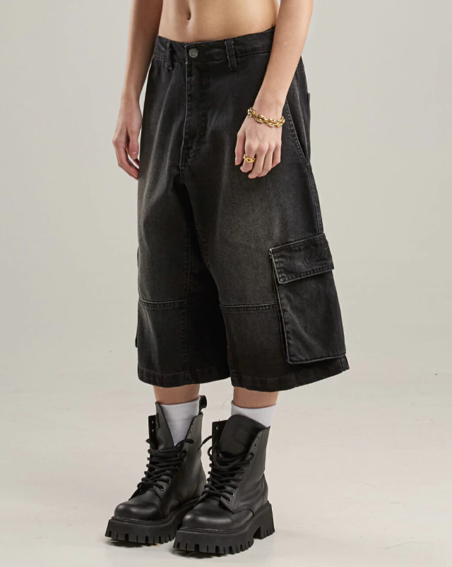 El cierre es frontal con cierre y botón . Tiene elástico en la cintura.