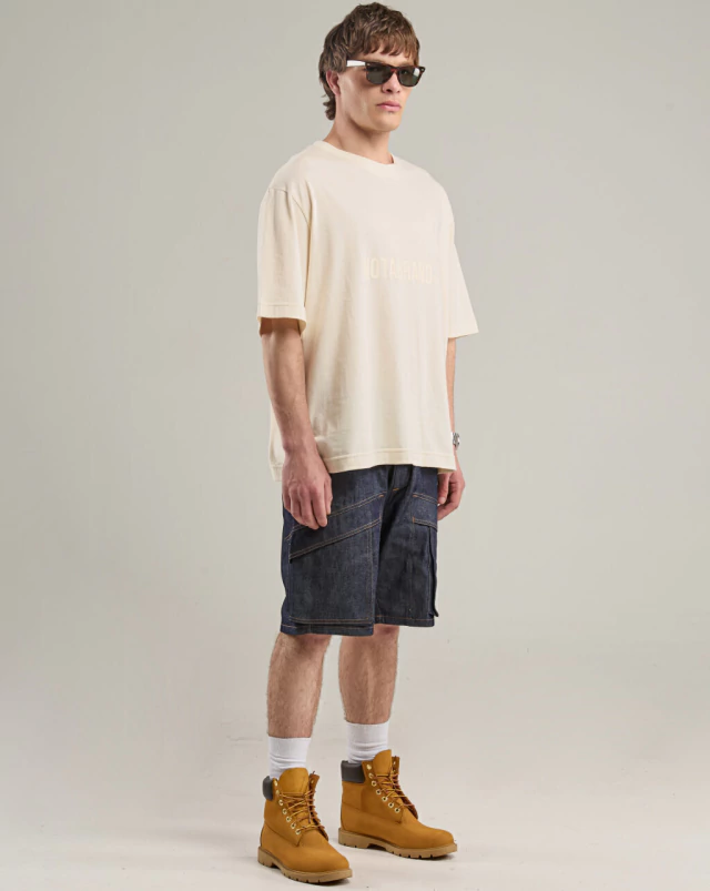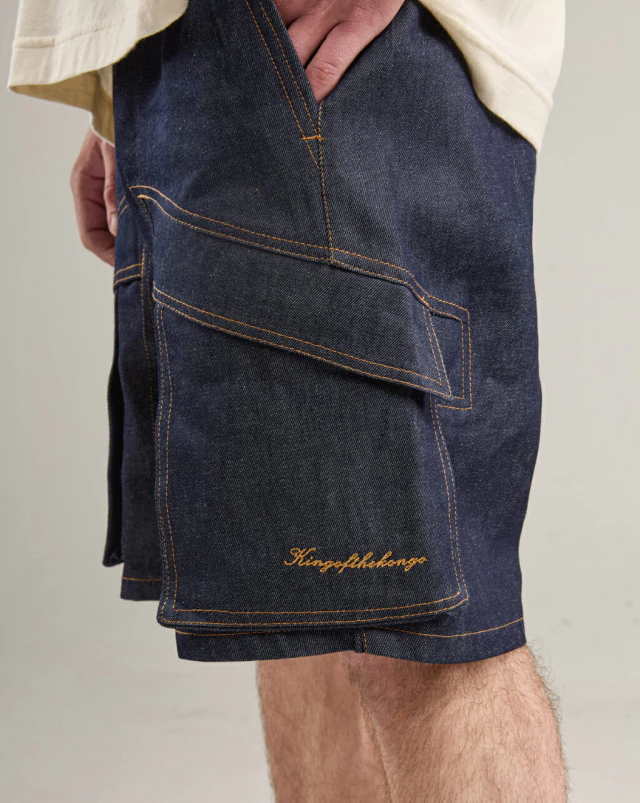 Tiene cintura elastizada, cordón interno y bolsillos irregulares con fuelle.