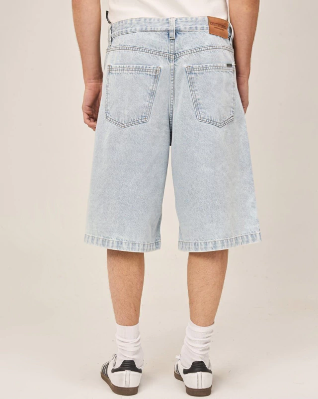 Bermuda de denim rígido con calce relajado a la rodilla.