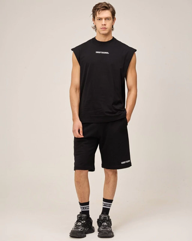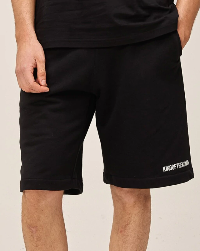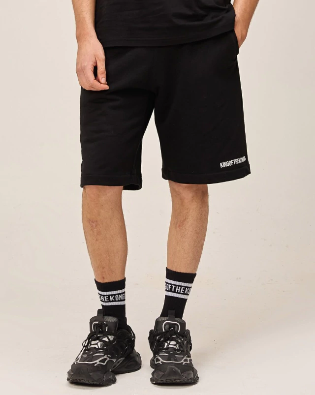 Bermuda color negro, de corte relajado y amplio a la rodilla.