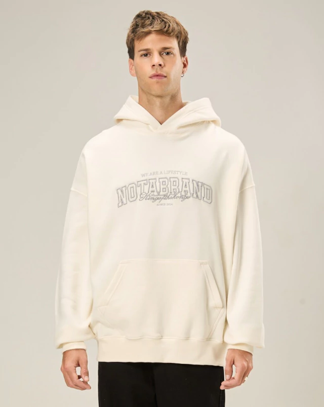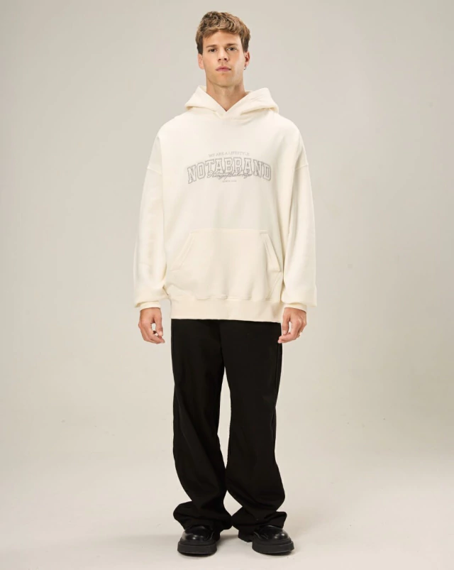 Buzo oversize con capucha forrada en frisa y bolsillo canguro.