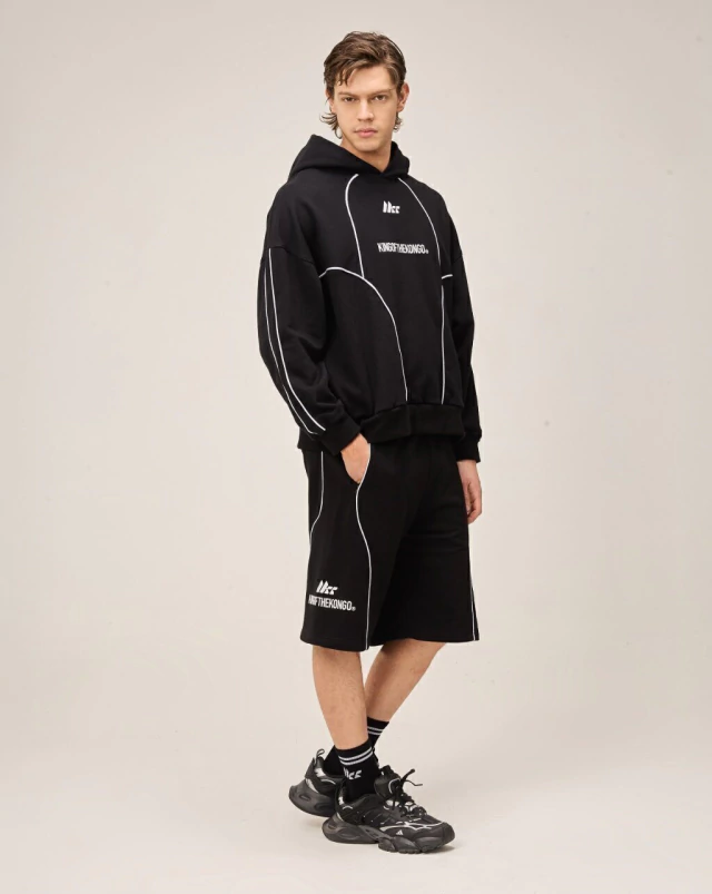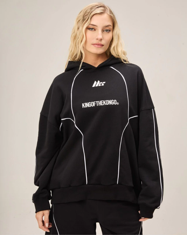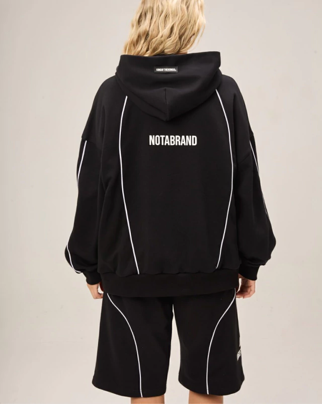 Buzo corte boxy fit con calce amplio y estructura relajada. Con recortes y vivos a contratono en frente, espalda y mangas.