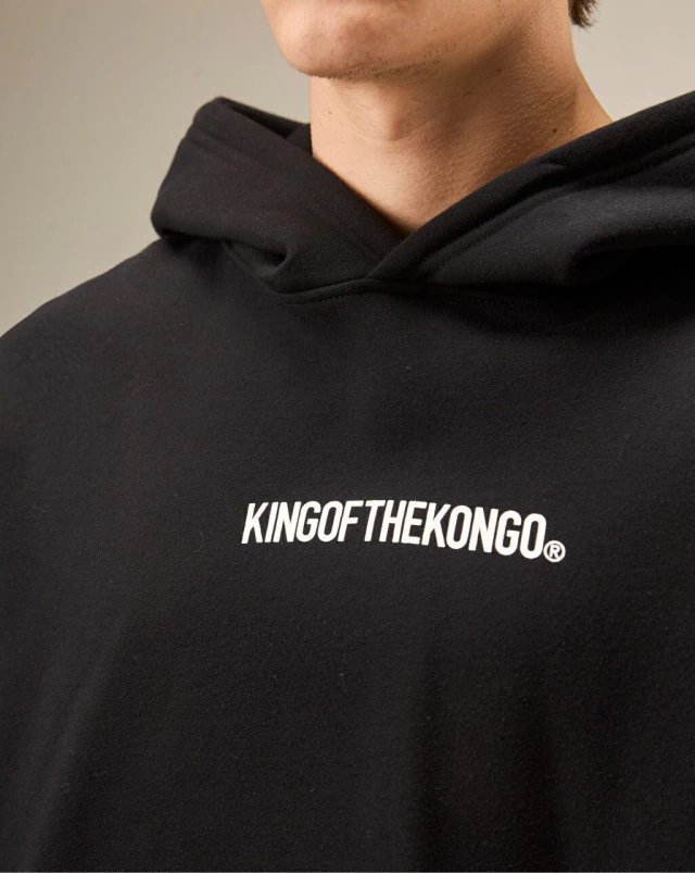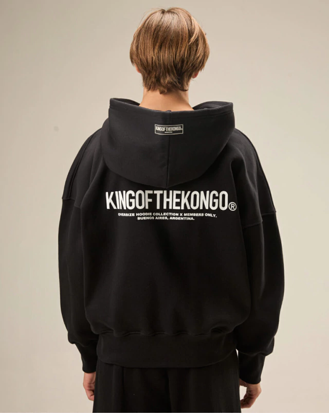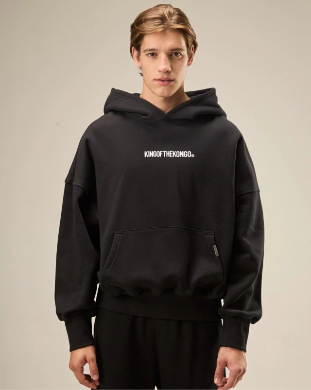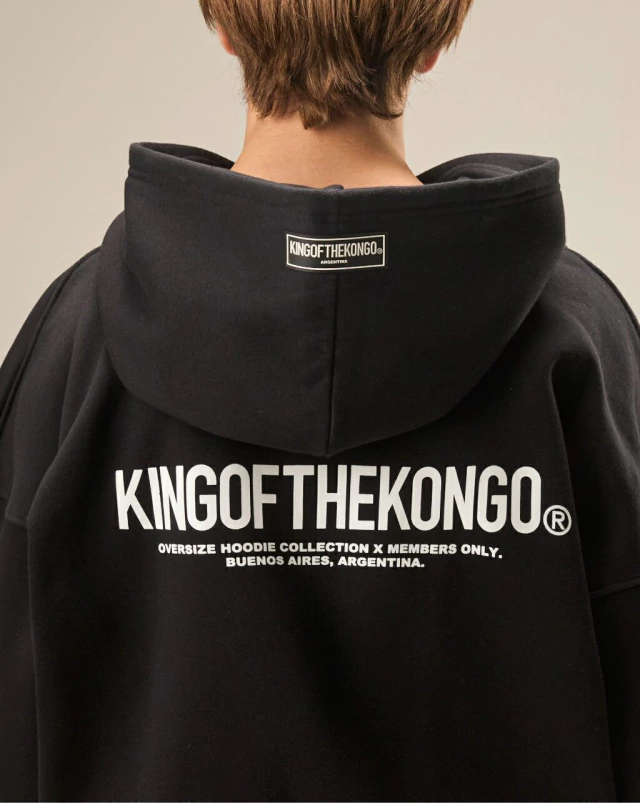 Buzo Extreme Oversize, con capucha y bolsillo canguro, con estampa institucional en el frente y en la espalda.
