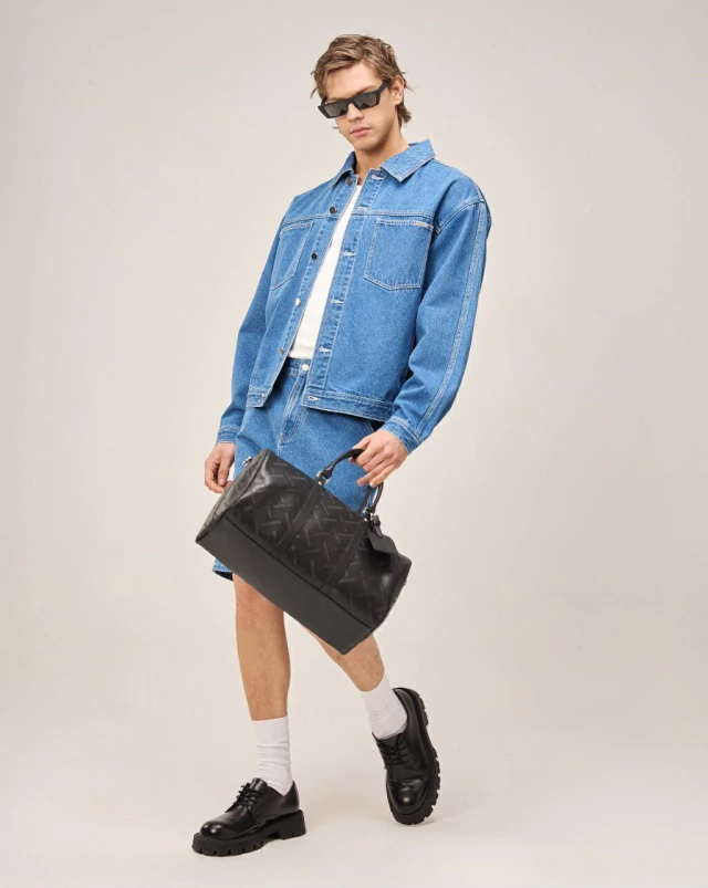Lleva el logo gofrado en la espalda como statement gráfico, y avíos metálicos desarrollados especialmente para la prenda.