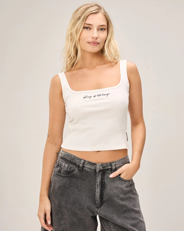 Musculosa de escote pronunciado y cuadrado. Una básica del verano, ya que es una prenda súper versátil.