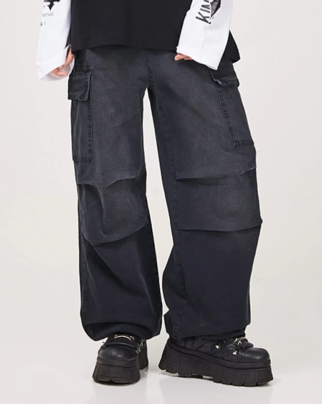 Pantalón Parachute con bolsillos cargo, cintura elastizada y cordón ajustable en ruedo.