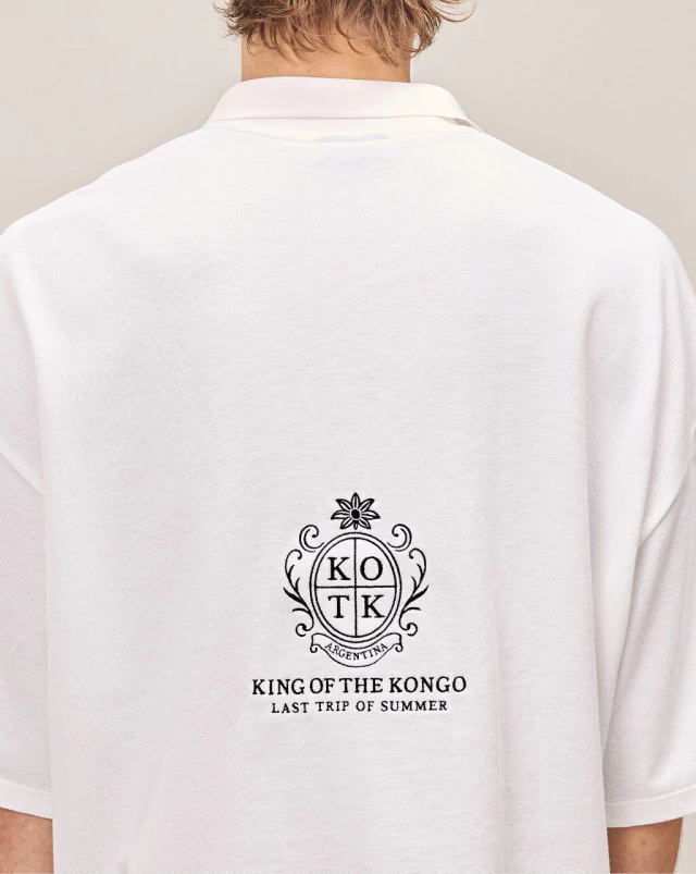 El frente bordado aporta una impronta nostalgica pero urbana. La espalda lleva todo el statement: un escudo bordado que toma el protagonismo y refuerza la identidad visual de la coleccion.