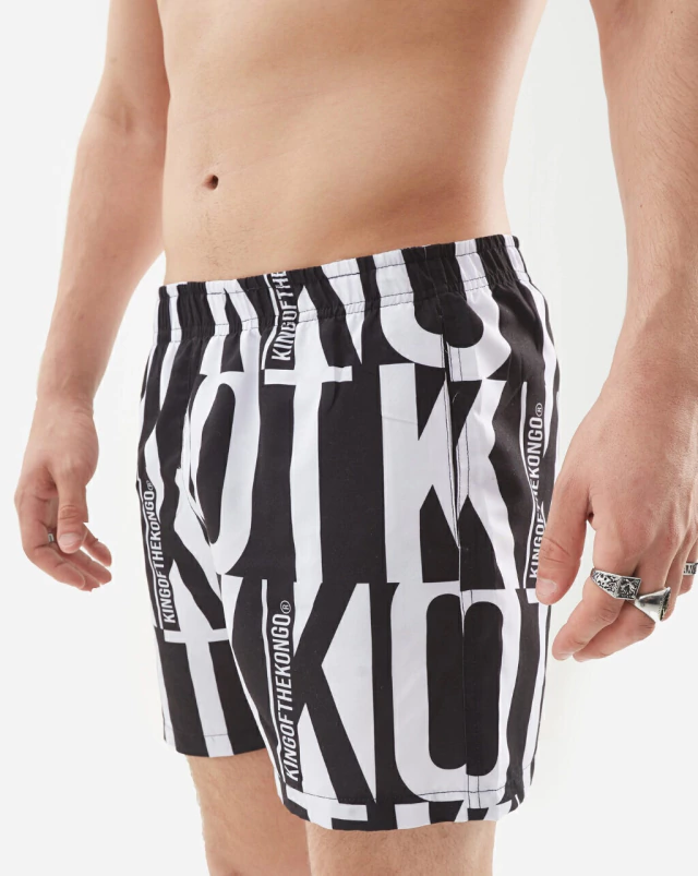 Traje de baño con suspensor y estampados de marca.