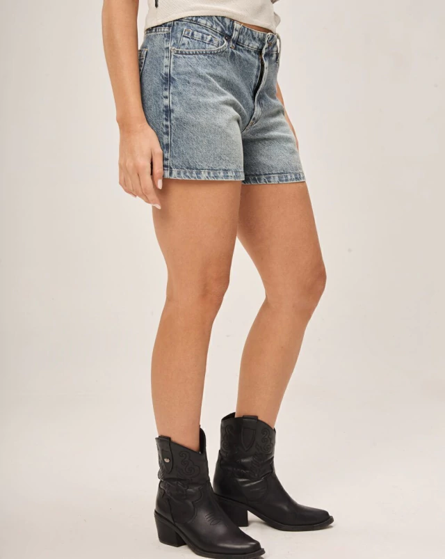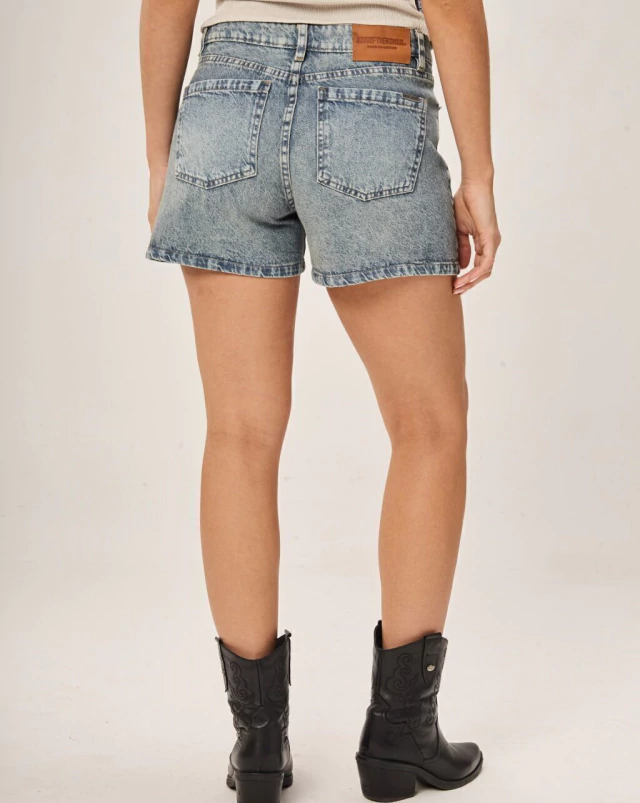Short de jean liviano, de pierna ancha y larga. El fit es relajado, estilo baggy.